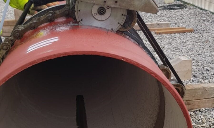 The improvements at United Utilities Waste Water Treatment Works at Blackburn, Darwen and Nab’s Head, collectively known as the Blackburn Batch Project, involves the installation of 6m long sections of cement lined ductile iron pipes which are joined together. To allow for bends or tee piece connections, however, the pipes often need to be cut and re-bevelled.