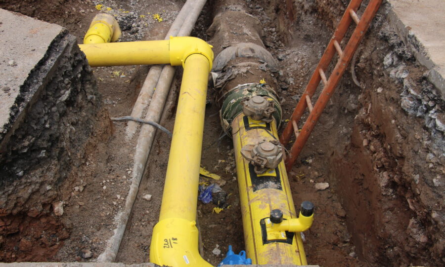 Once insertion is complete, the main is kept live to supply customers with gas via the annular space until it is operationally convenient to transfer the services to the new PE main.