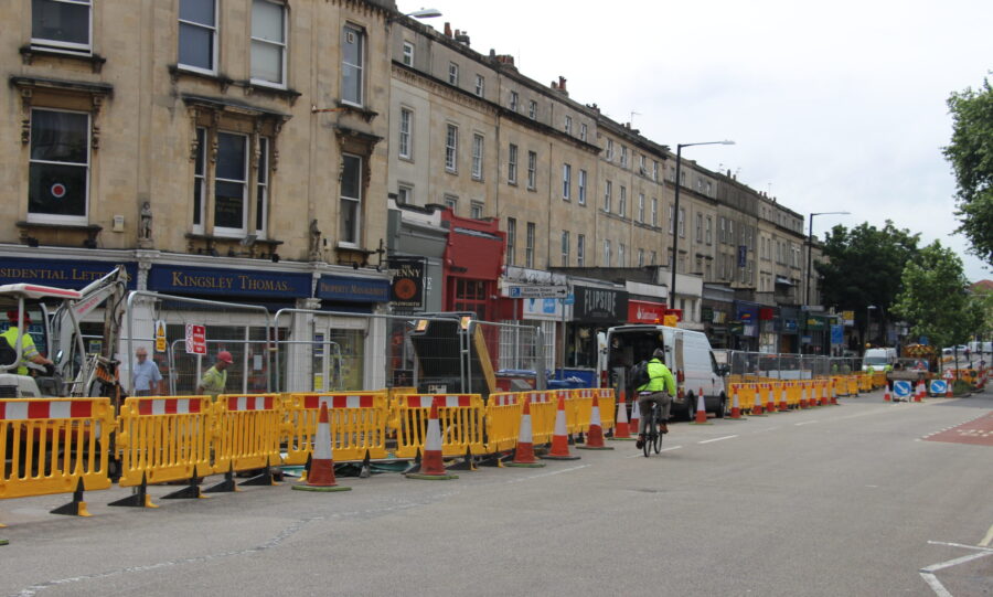 Only one trench was needed for the insertion of 850m of P.E pipe – a major advantage given the considerable vehicular and pedestrian traffic on Whiteladies road. Once the trenches were prepared, a bypass was set up to maintain customer’s gas supplies. Whiteladies road is a busy destination with shops, restaurants and offices. Preserving the flow of gas to these premises was of vital importance to the success of the project.