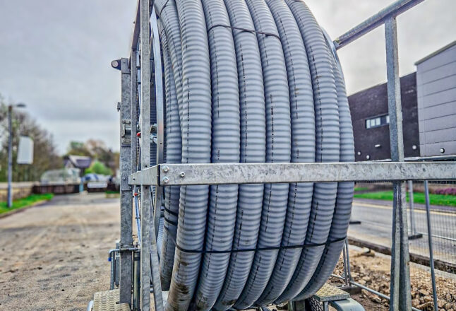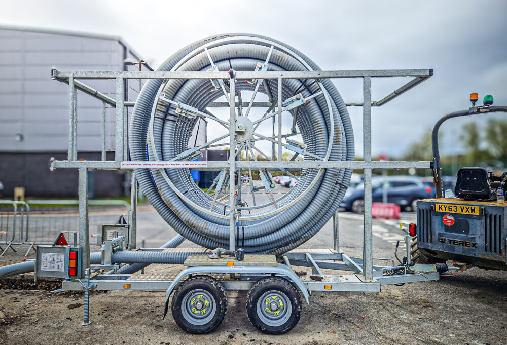 The coil is restrained within the frame of the trailer to prevent it ‘springing away’ and pipe is restrained during transport and dispensing.