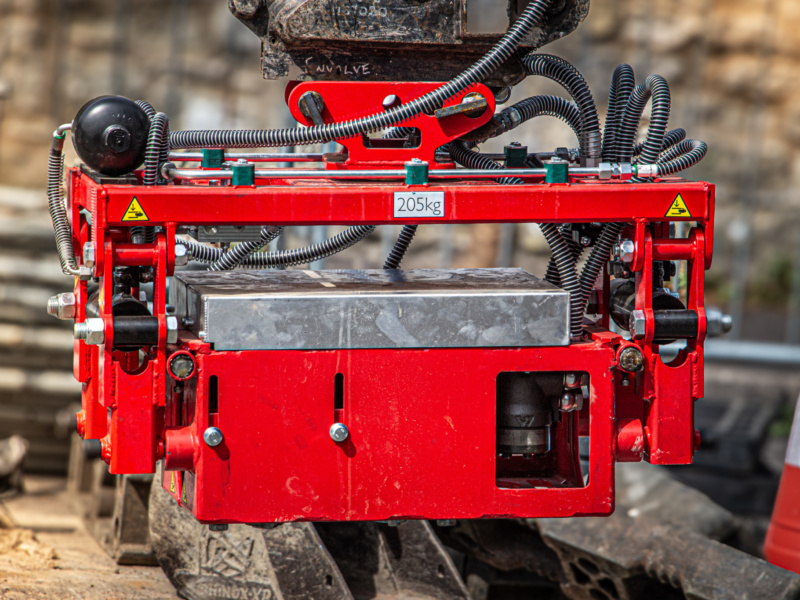 The Perpetual Pipe Pusher pushes at speeds of 25 metres per minute. Once the attachment is correctly positioned in the trench, the excavator arm remains static throughout the insertion.